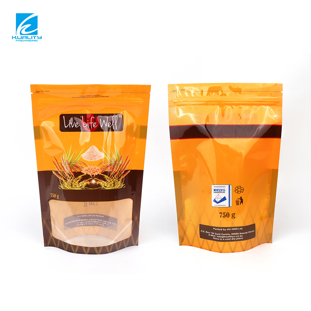 Manufacturer Custom Grain Packaging Stand Up Zipper Pouch with Window