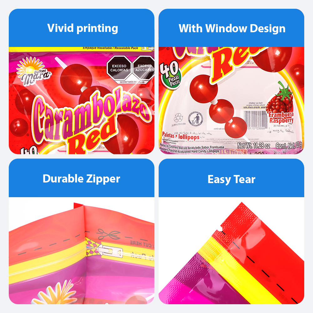 Custom Candy Packaging Bag Supplier – Plastic Composite Stand Up Pouches with Resealable Zipper