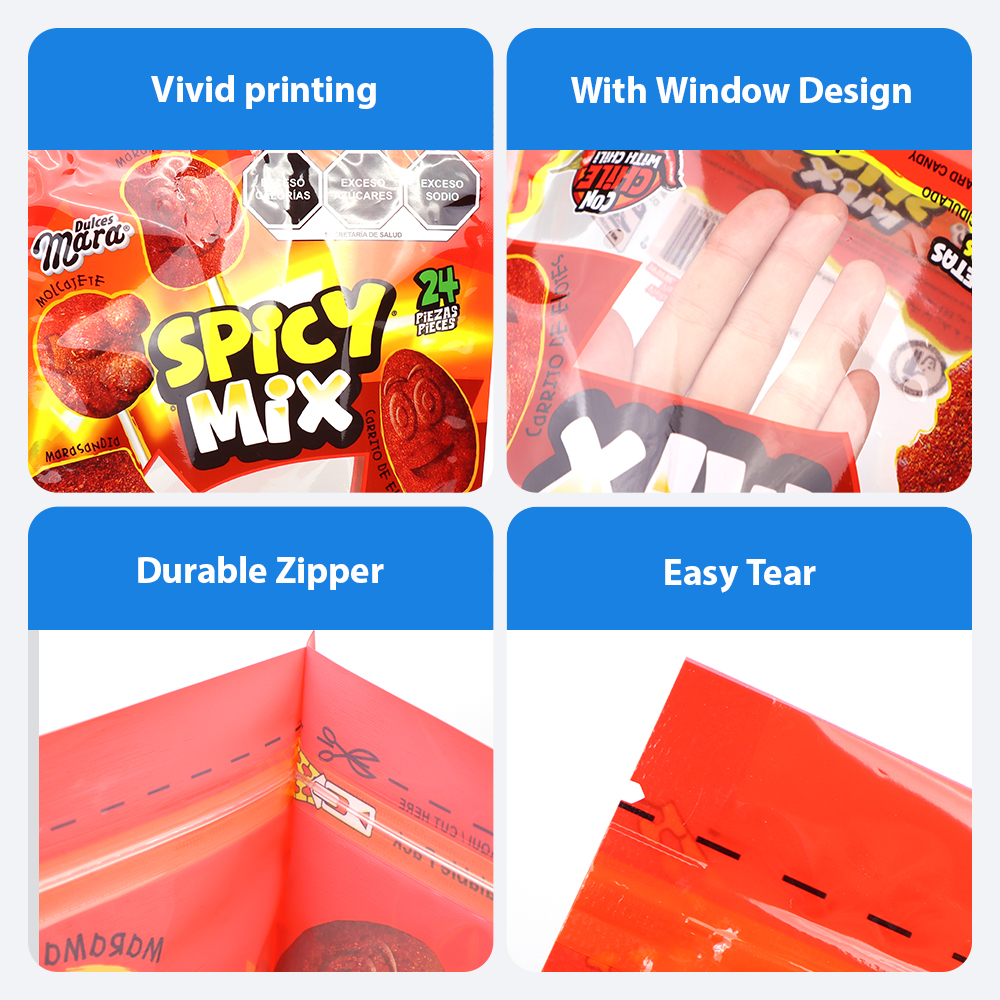 Custom Candy Packaging Bags – Laminated Plastic Zipper Pouches with Window