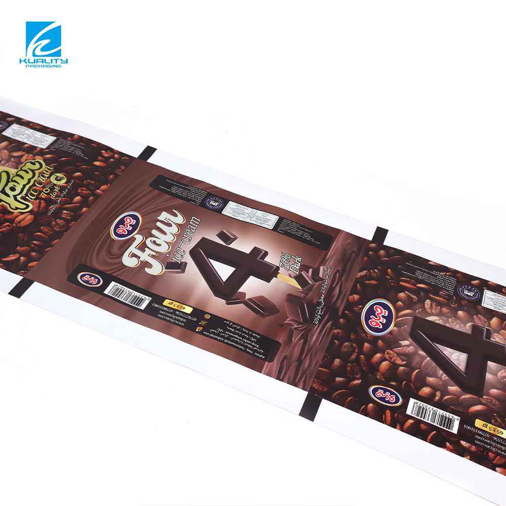 This custom ice cream packaging roll film supports high-quality printing and customizable sizes, making it ideal for ice cream packaging and frozen dessert products.