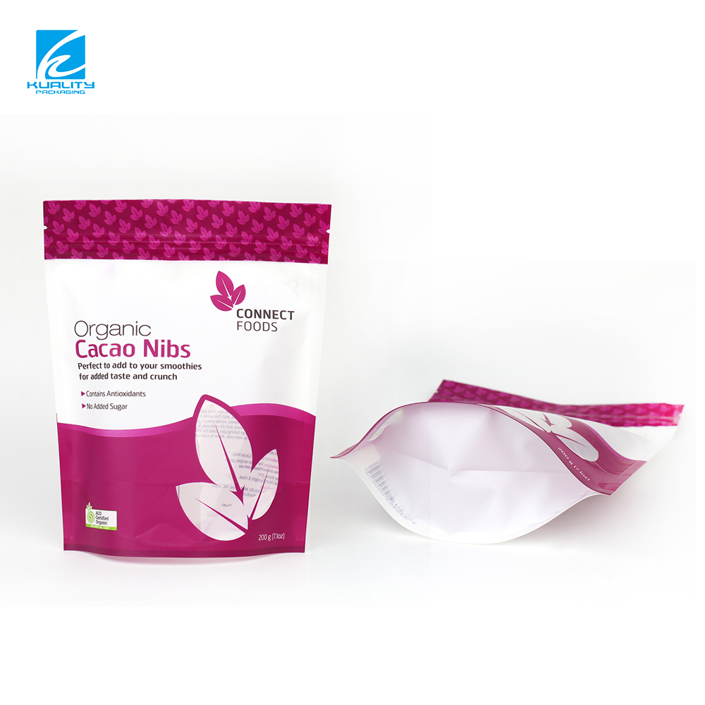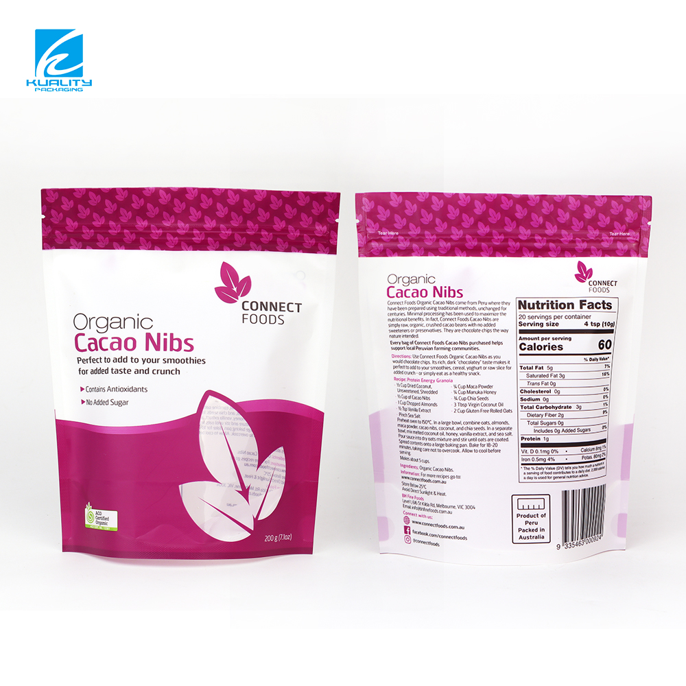 Manufacturer Custom Cocoa Nibs Packaging Stand Up Zipper Pouch