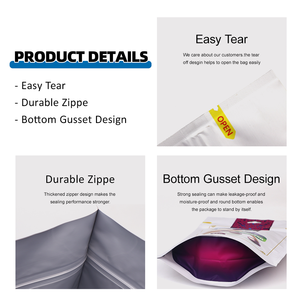 Manufacturer Custom Powder Packaging Stand Up Zipper Pouch