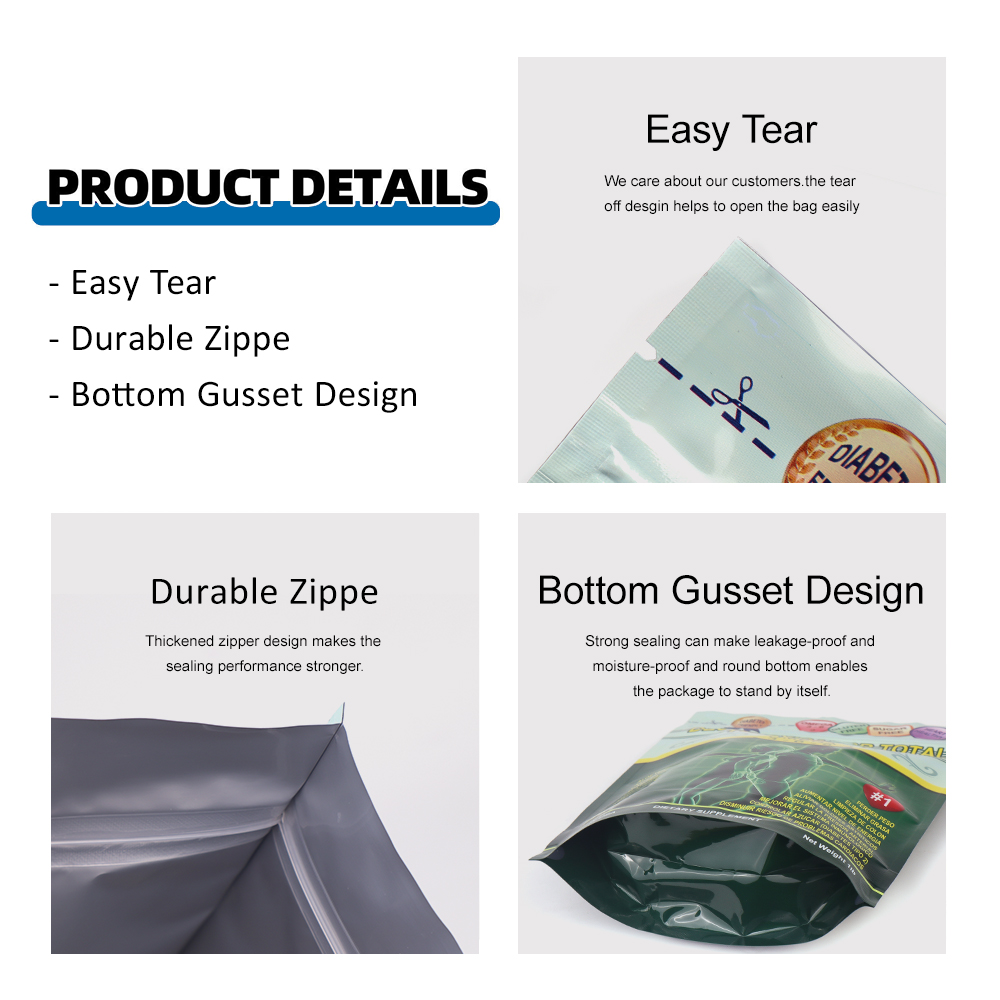 Custom Supplement Packaging Bags Aluminum Foil Stand Up Zipper Pouch