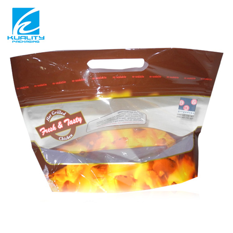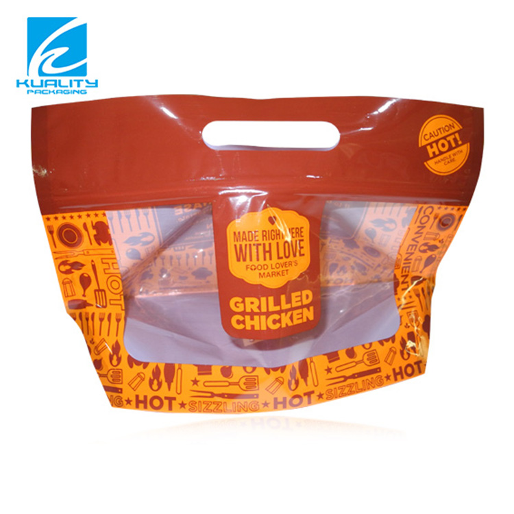 OEM Plsatic Roast Fried Chicken Bag,Laminated Stand Up Food Packaging Pouch With Handle